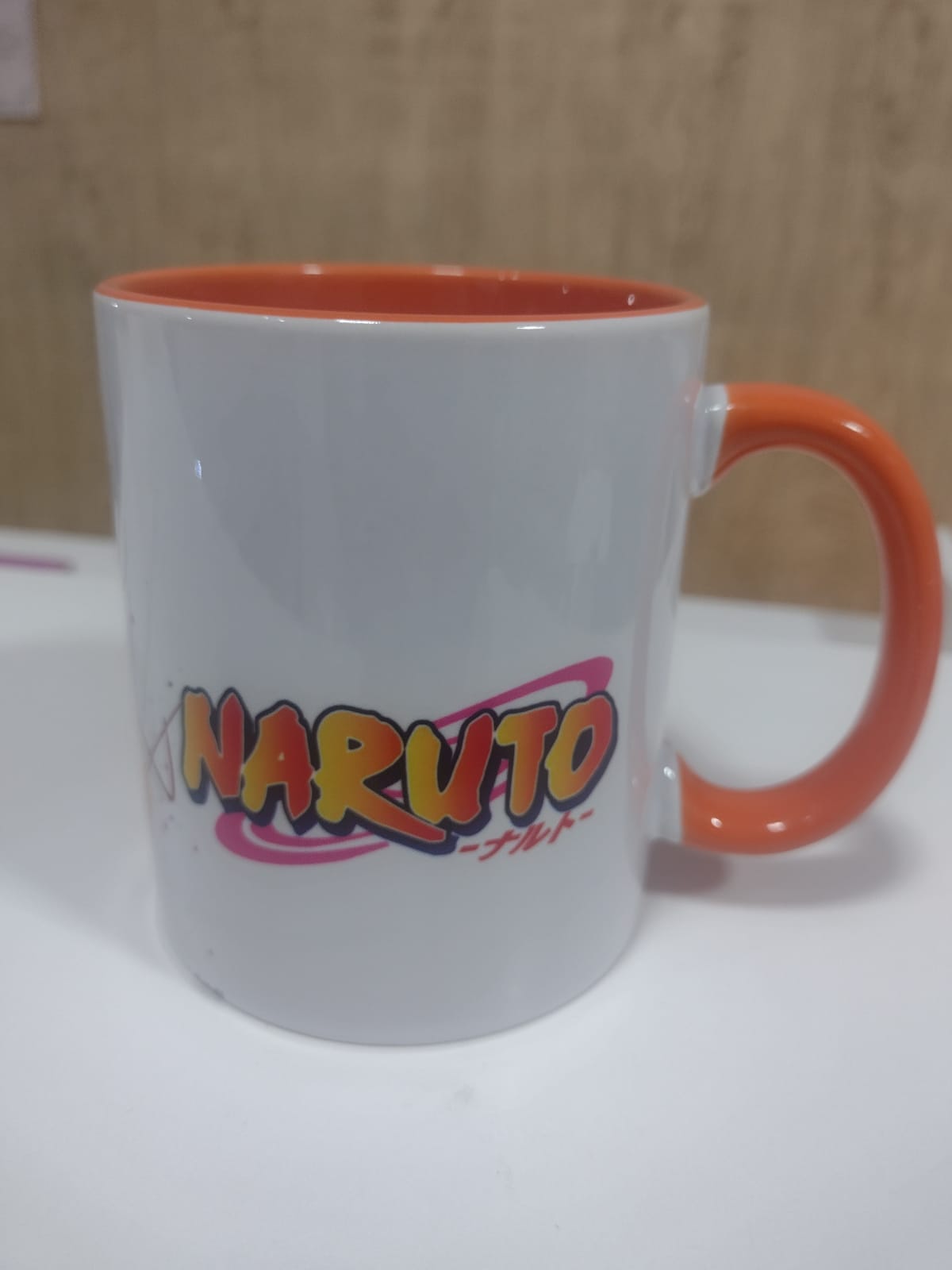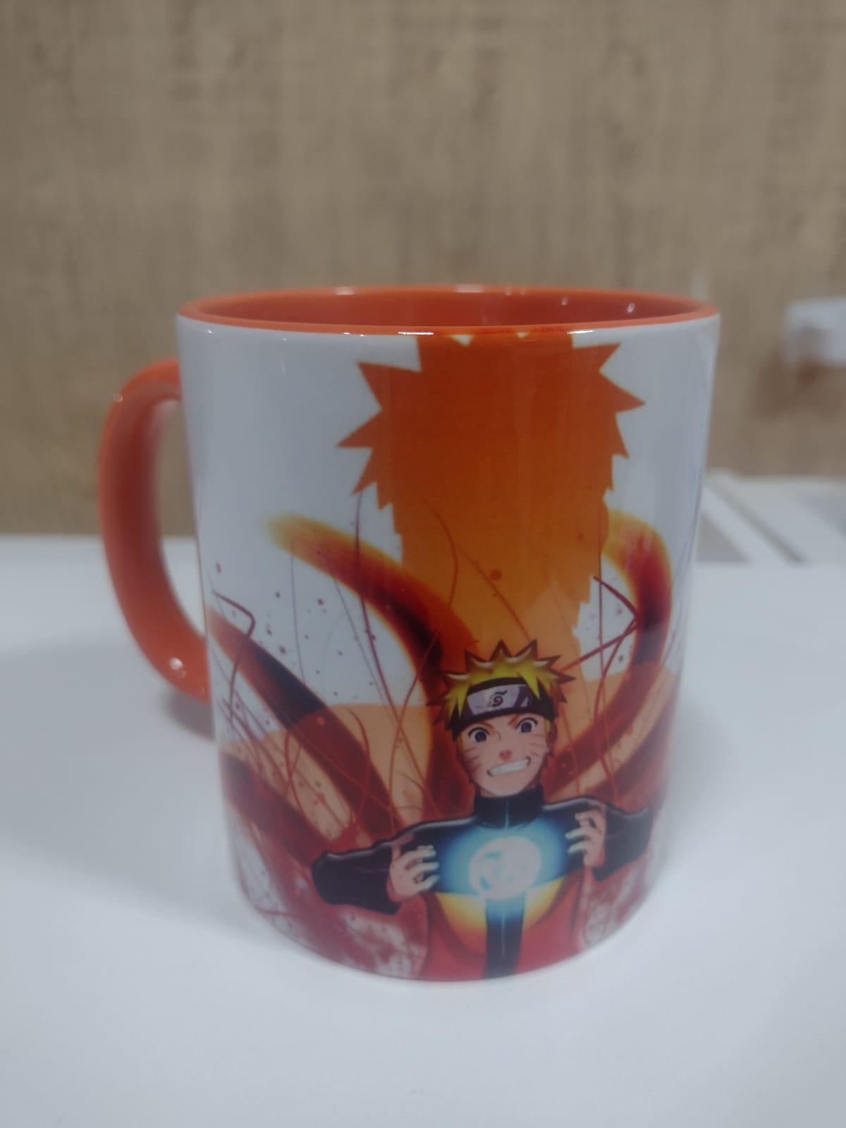 Caneca de porcelana, 320ml alça e interior Laranja.